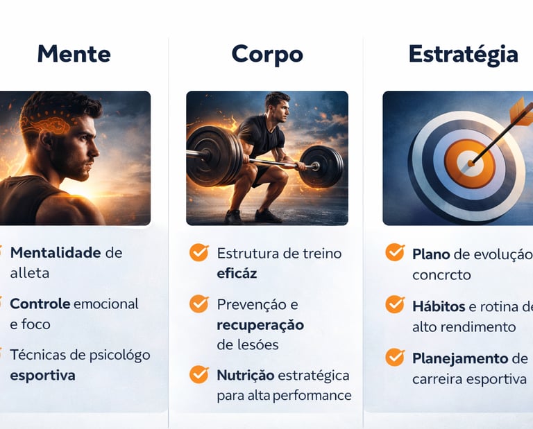Um sistema completo para desenvolver corpo, mente e estratégia esportiva, aplicável a qualquer modalidade.
